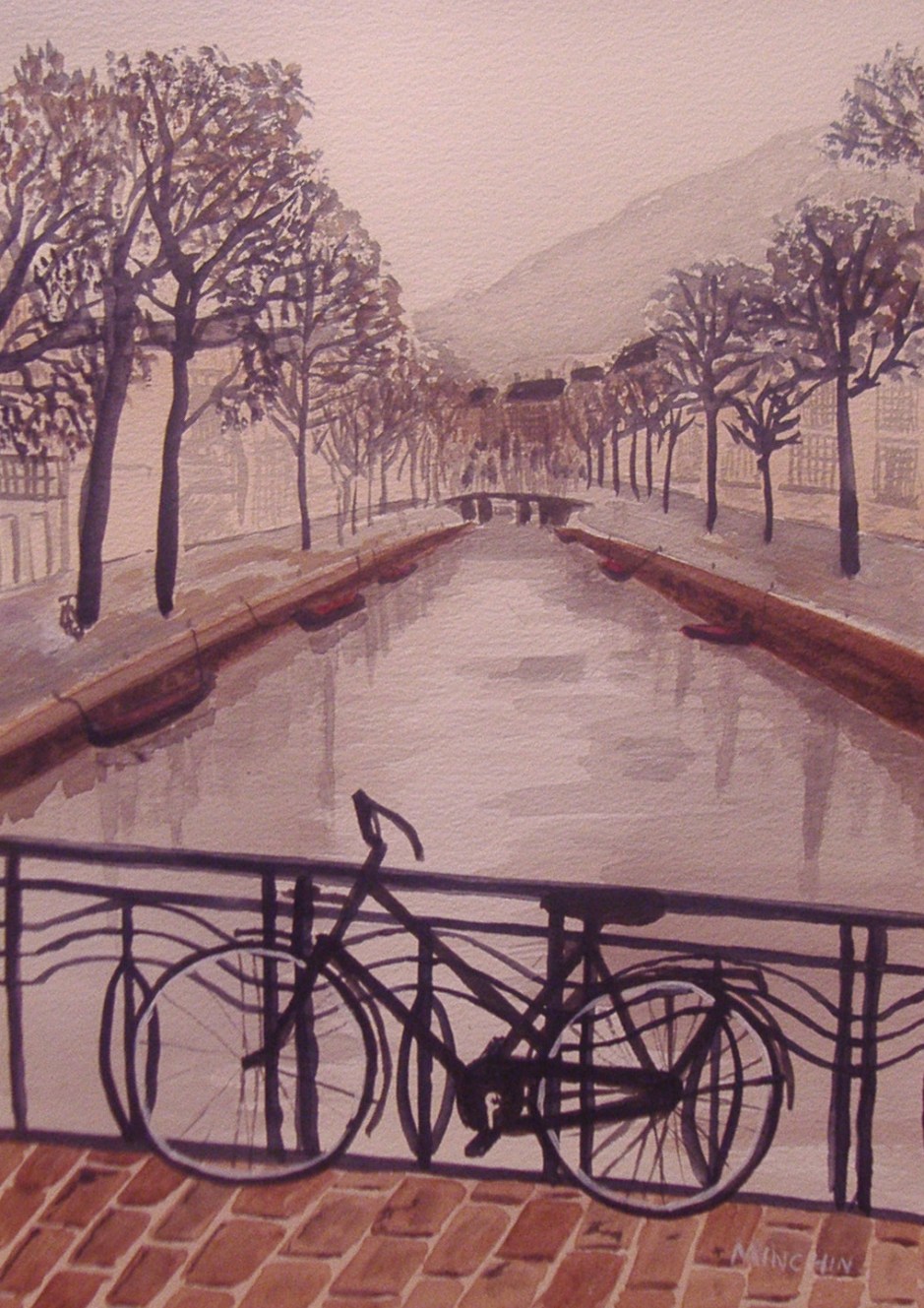 A simple watercolour depicting a grey, overcast day in the capital of the Netherlands, from a weekend away with Sue and friends.