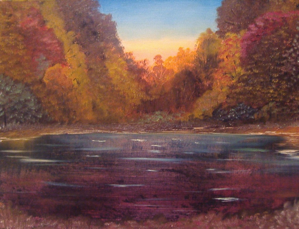 Imagine the rustic tones of Autumn, illuminated by the last few rays of the setting sun, reflected in the quiet, still waters of a crystal clear lake.