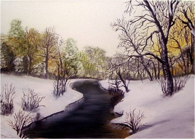 Icy Beck Icy BeckOil on Canvas12″ x 16″Painted 2003 Unframed, £29 + Delivery An imaginary winter scene which my Grandma loved and adored. Now returned back to the loft awaiting a new owner. Related