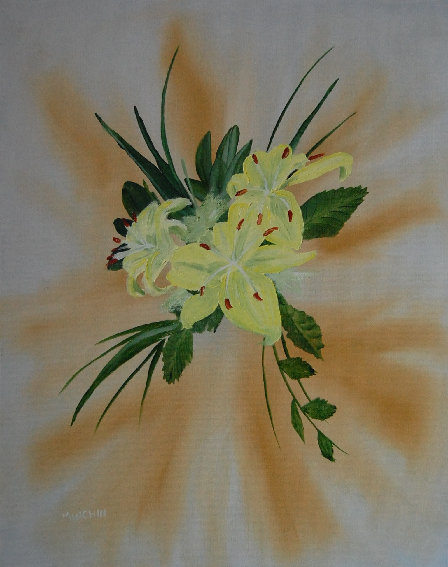 Lilies LiliesOil on Canvas18 x 24″Painted 2006 Adopted. Currently living in Sutton in Ashfield, UK Birthday present for a work colleague. Related